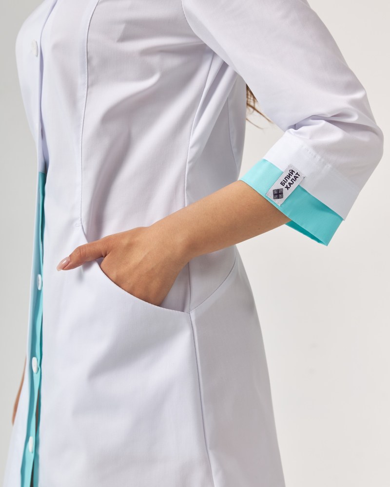 Медичний жіночий халат Олівія на гудзиках білий-ментол р. 50, "БІЛИЙ ХАЛАТ" 159-464-677
