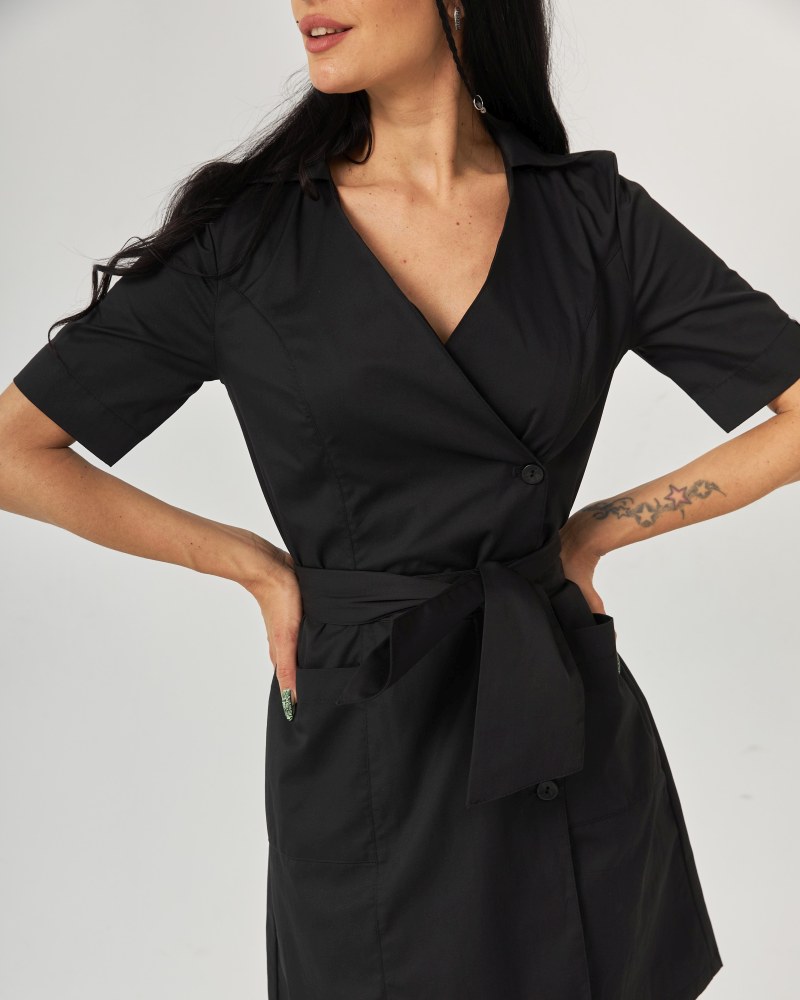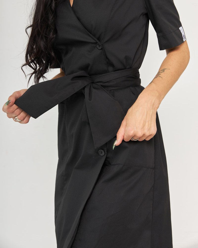 Медичний жіночий халат Токіо на гудзиках чорний р. 48, "БІЛИЙ ХАЛАТ" 162-321-677