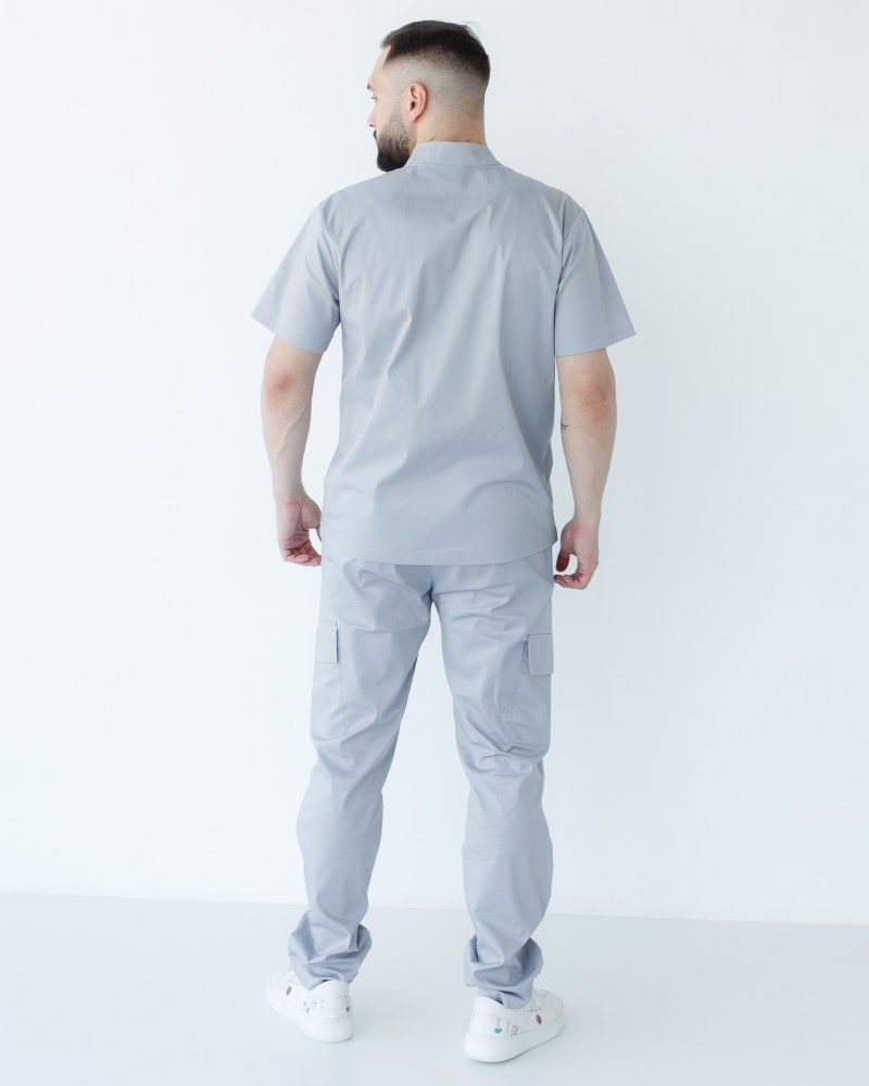 Мед костюм чоловічий DENVER (Денвер) - це зручний чоловічий костюм-двійка, який складається з медичної сорочки з коротким рукавом і брюк-карго. Сорочка має прямий силует, доповнений короткими рукавами, декорований лівий брендованою нашивкою. Комір-стійка та неглибокий розріз горловини застібається на дві кнопки. На лицьовому боці розташувався декоративний шов, у якому захована функціональна кишеня.