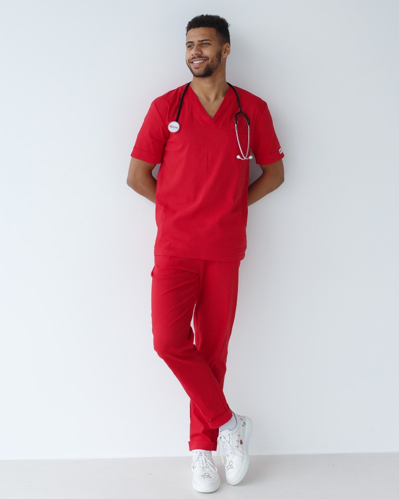 Медичний костюм чоловічий Марсель червоний р. 46, "БІЛИЙ ХАЛАТ" 353-339-708