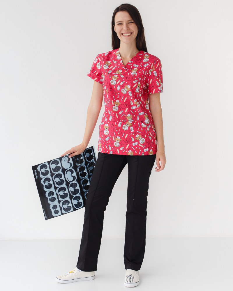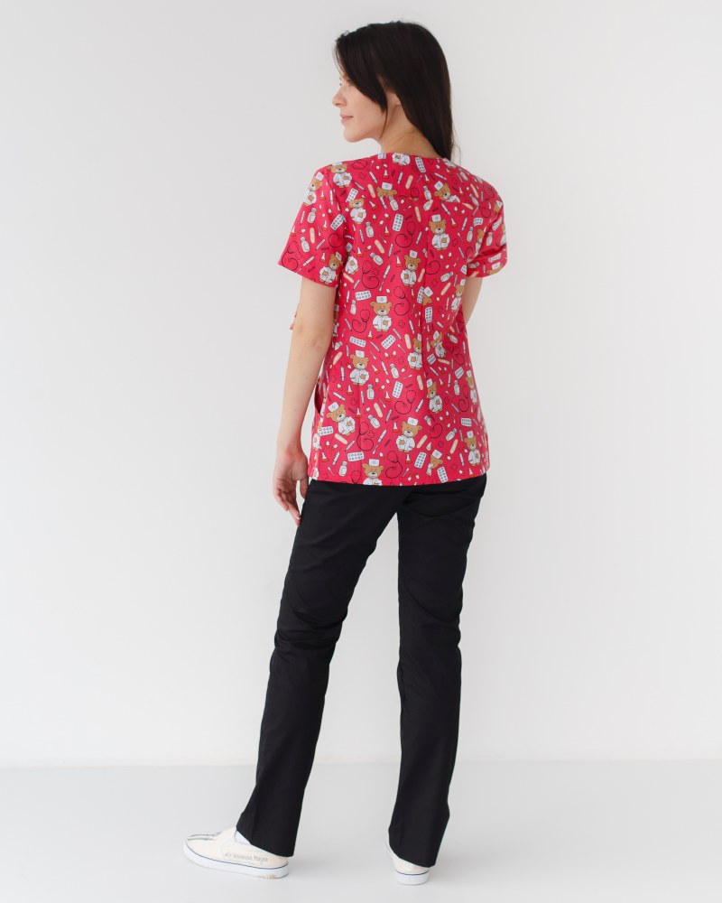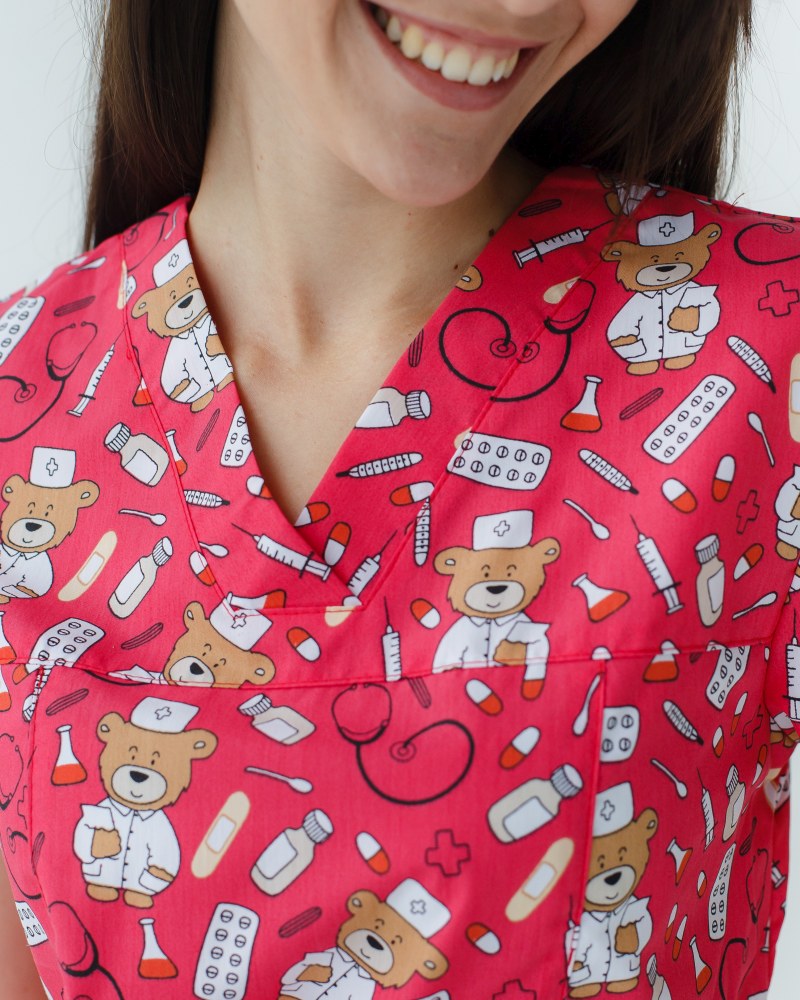 Медичний костюм із принтом жіночий Топаз Bear red р. 40, "БІЛИЙ ХАЛАТ" 138-343-559