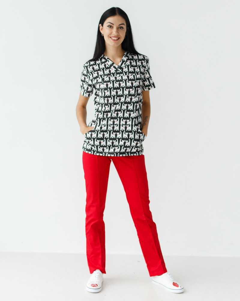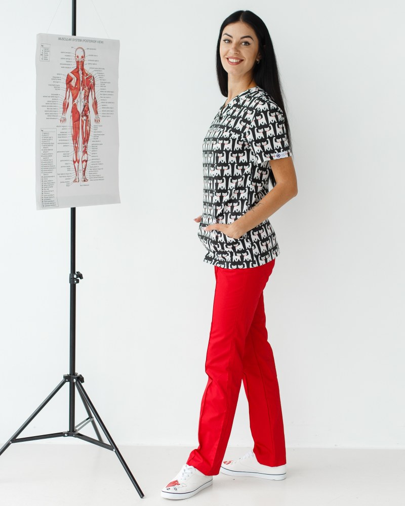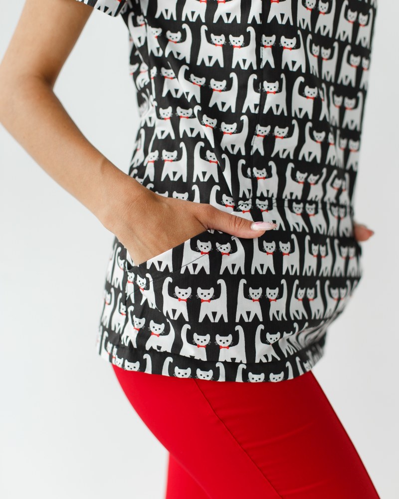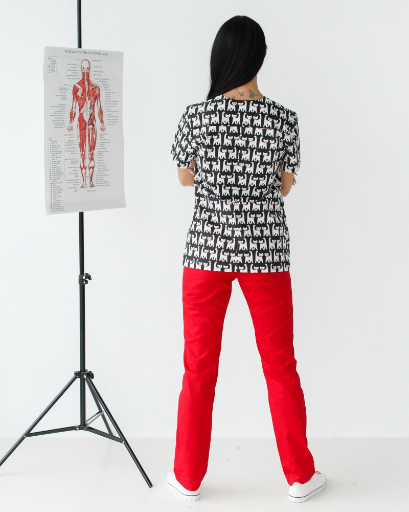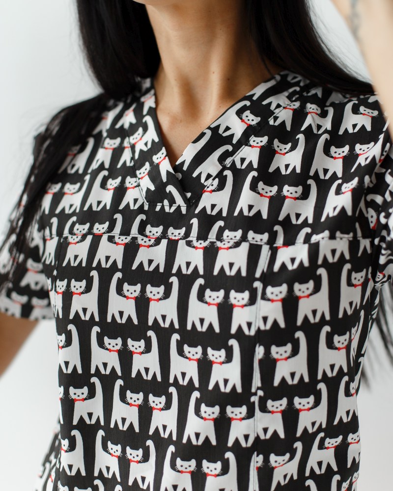 Медичний костюм із принтом жіночий Топаз Cats black р. 40, "БІЛИЙ ХАЛАТ" 138-341-568