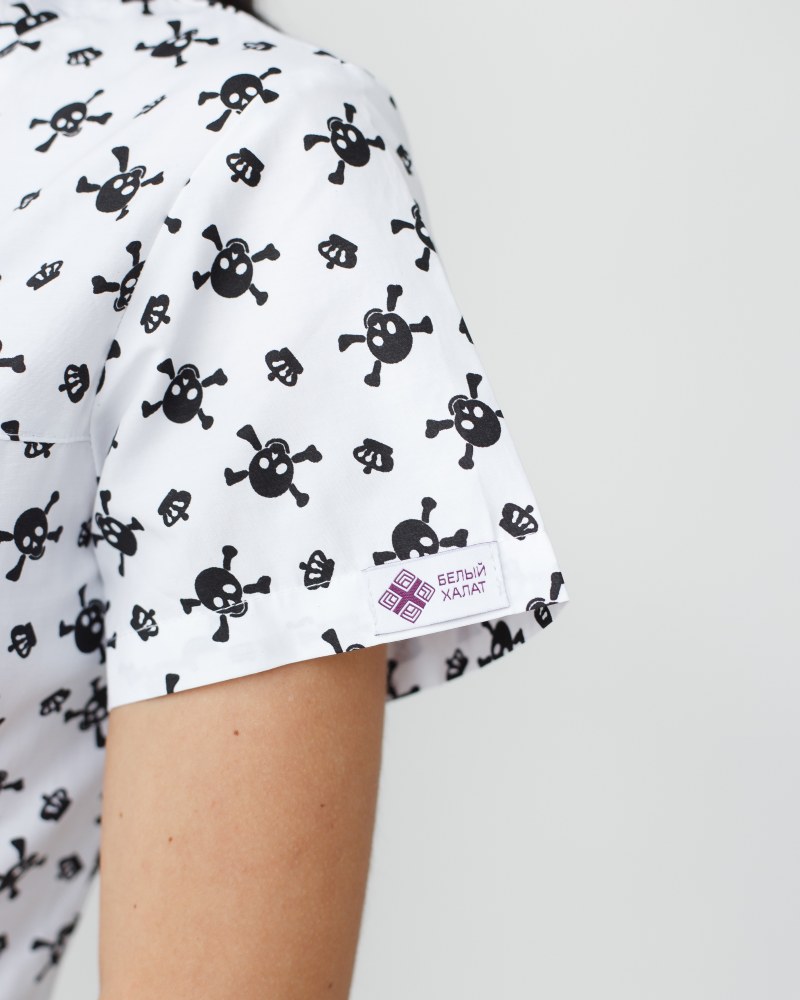 Медичний костюм з принтом жіночий Топаз черепа білі р. 42, "БІЛИЙ ХАЛАТ" 138-321-666