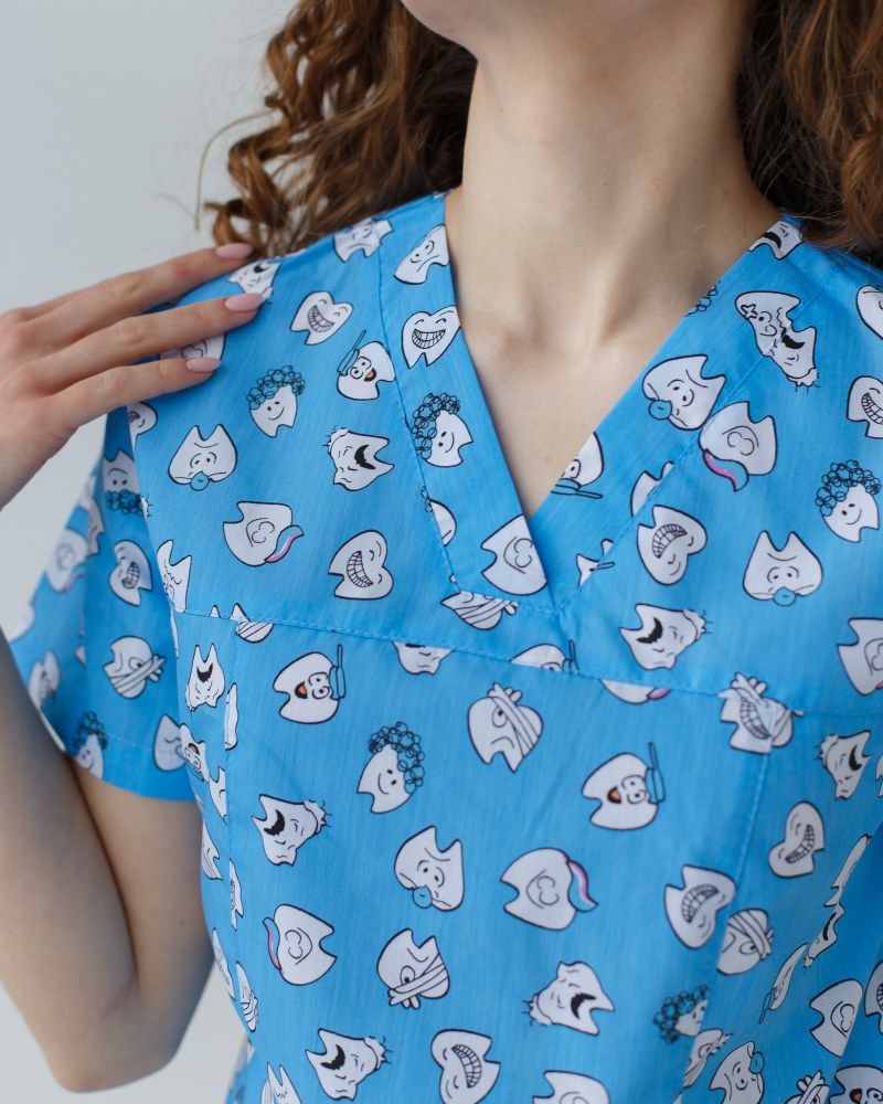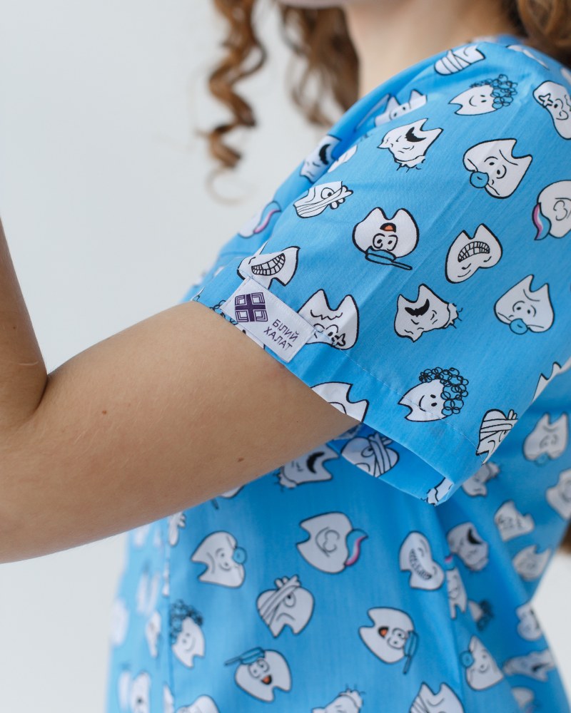 Медичний костюм з принтом жіночий Топаз Dentist blue р. 46, "БІЛИЙ ХАЛАТ" 137-324-776