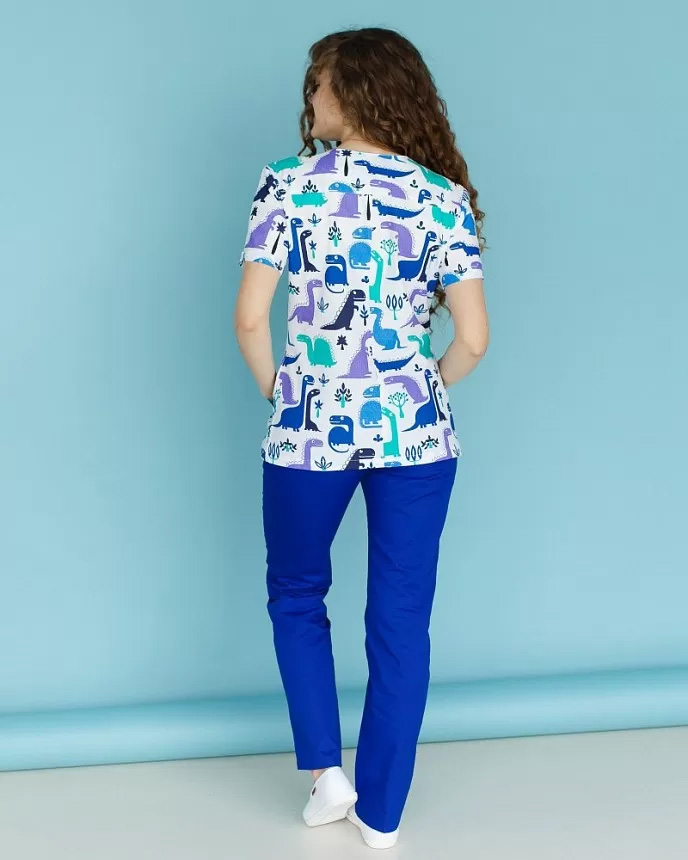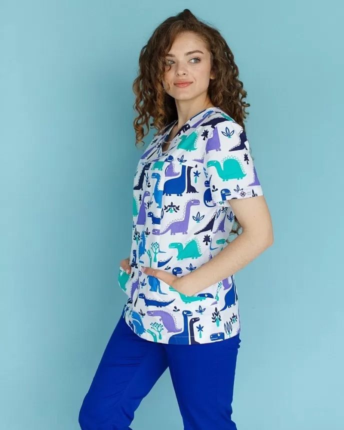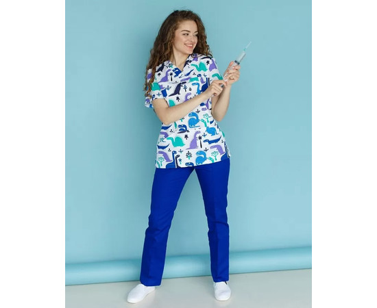 Медичний костюм із принтом жіночий Топаз динозавр електрик р. 44, "БІЛИЙ ХАЛАТ" 138-334-640
