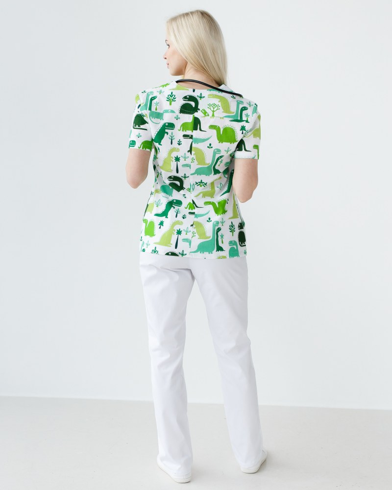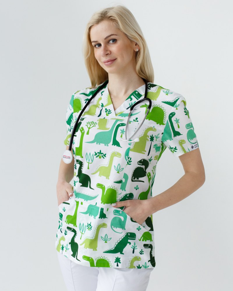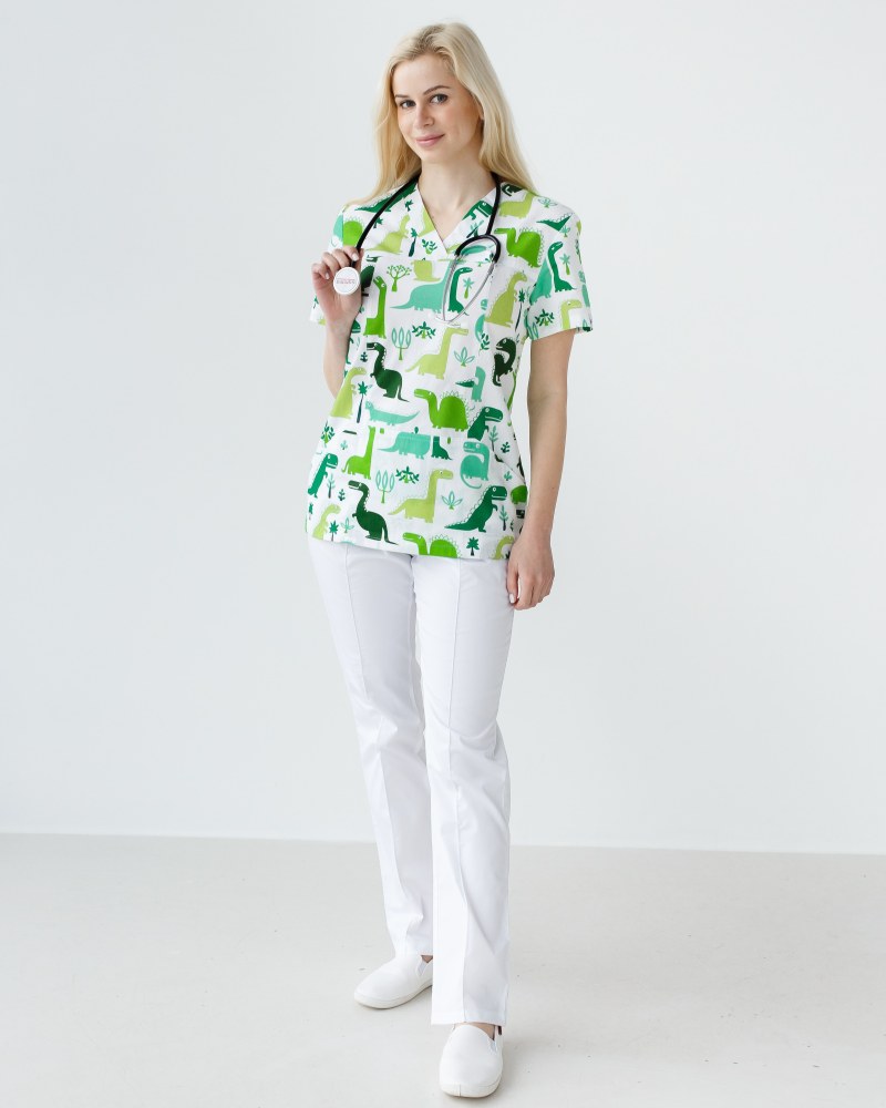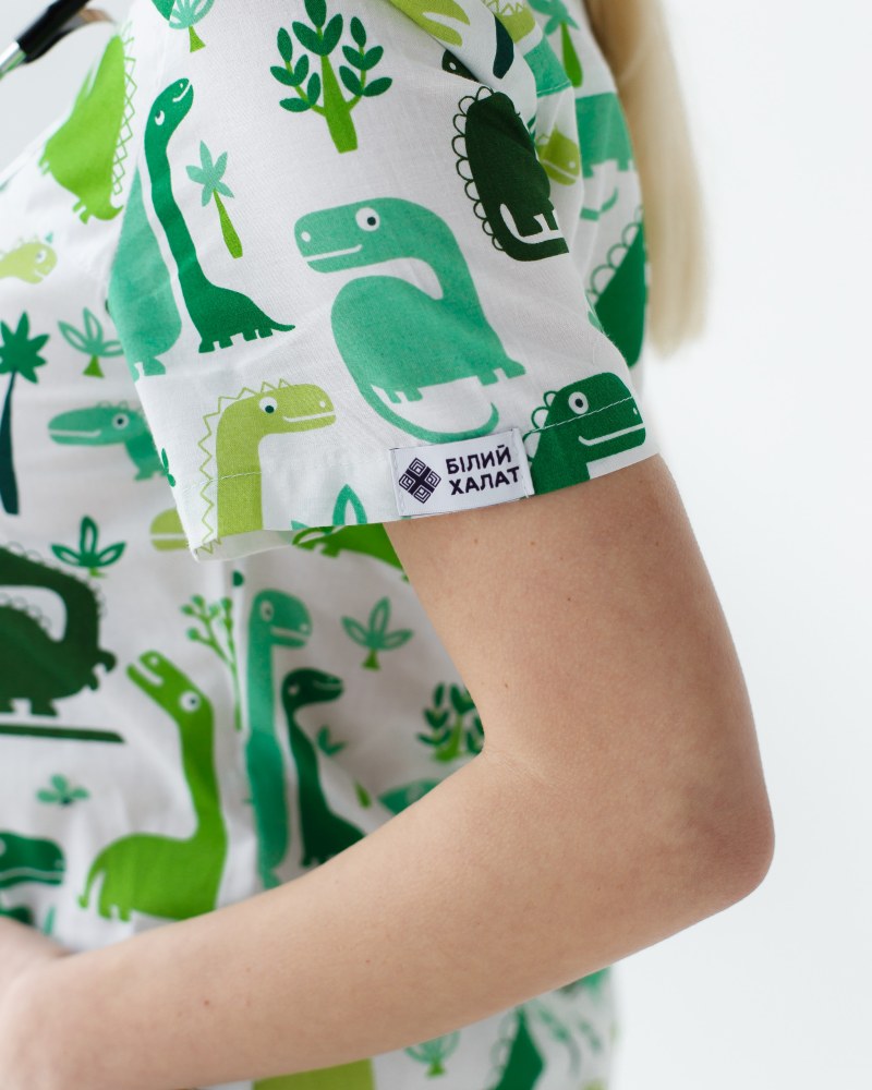 Медичний костюм з принтом жіночий Топаз зелений динозаври р. 40, "БІЛИЙ ХАЛАТ" 137-324-769