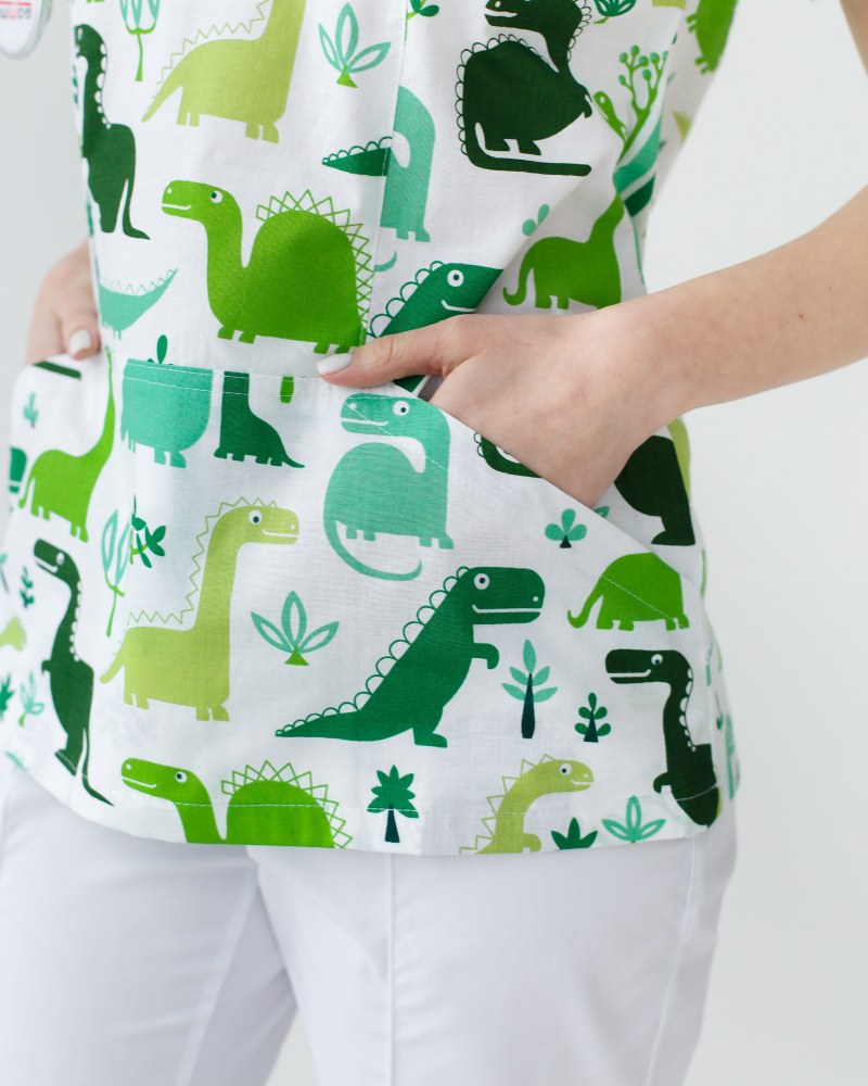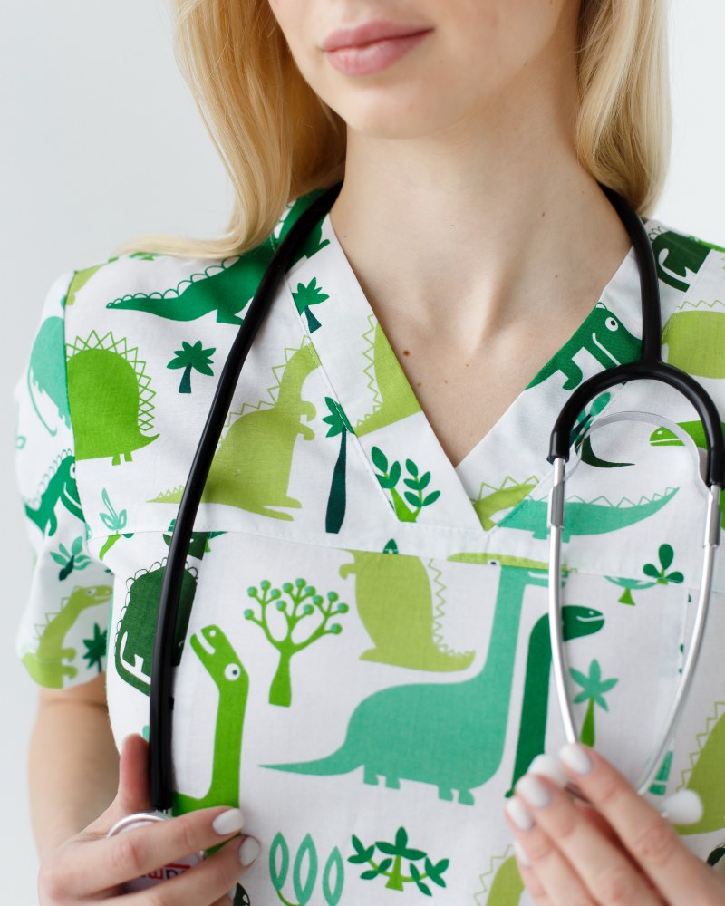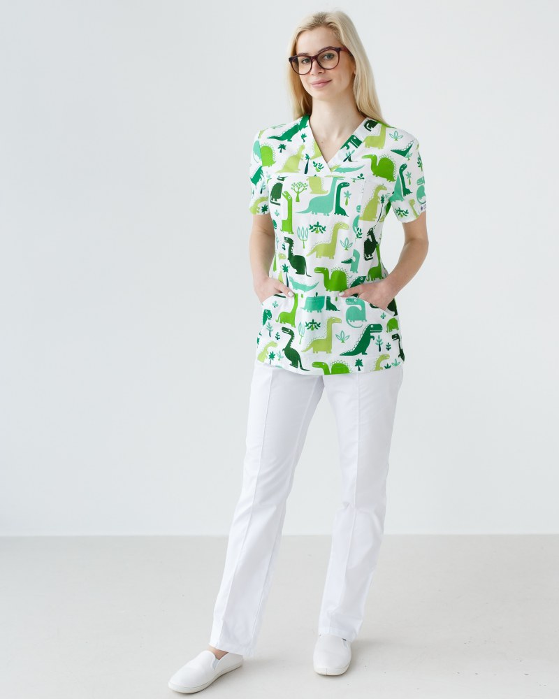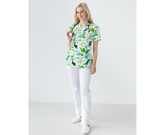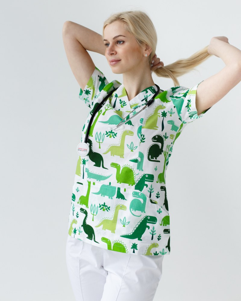 Медичний костюм з принтом жіночий Топаз зелений динозаври р. 40, "БІЛИЙ ХАЛАТ" 137-324-769