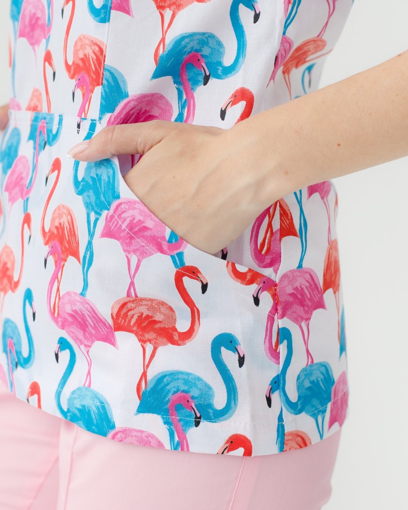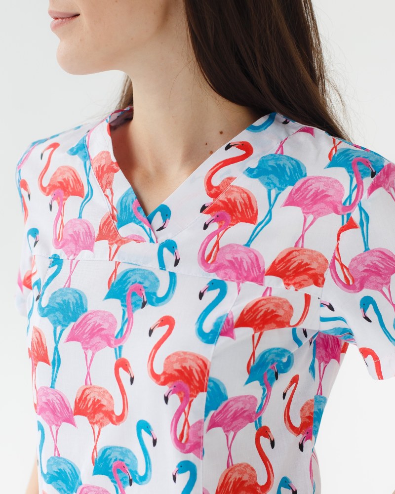 Медичний костюм з принтом жіночий Топаз фламінго кольорові р. 44, "БІЛИЙ ХАЛАТ" 138-337-660