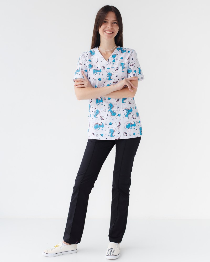 Медичний костюм з принтом жіночий Топаз космозавр чорний р. 46, "БІЛИЙ ХАЛАТ" 137-321-771