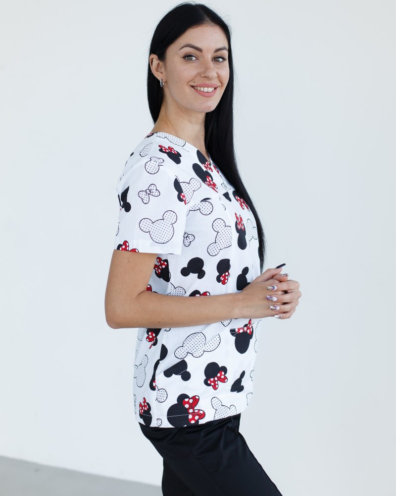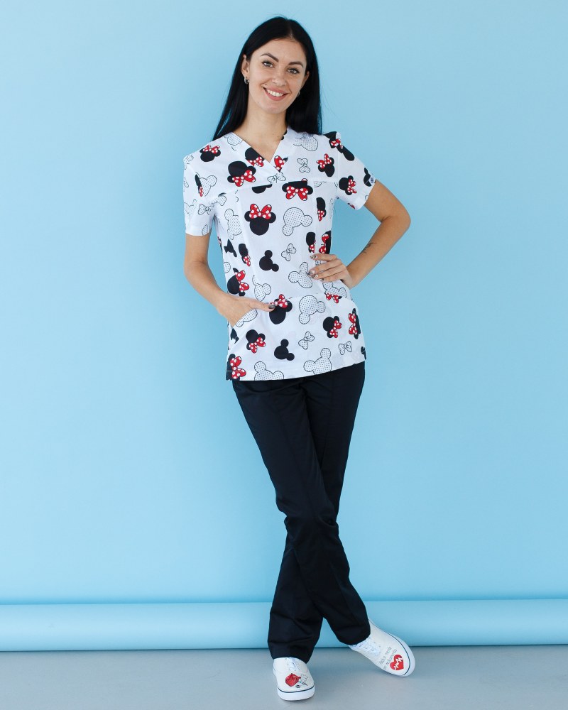 Медичний костюм з принтом жіночий Топаз міккі чорний р. 42, "БІЛИЙ ХАЛАТ" 137-321-773