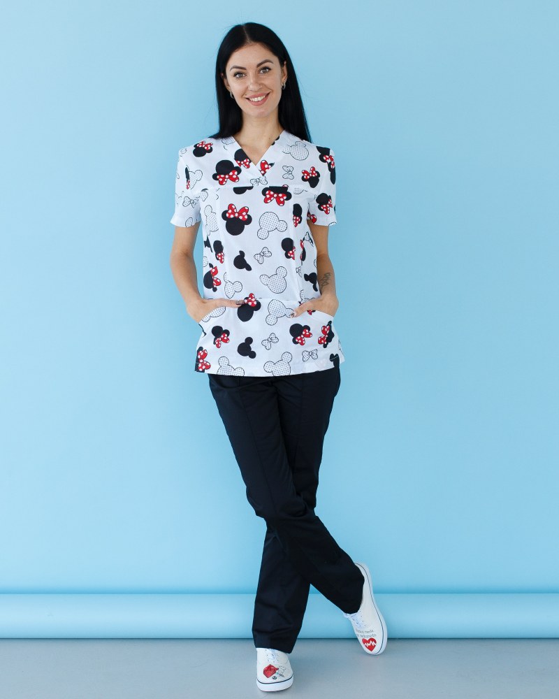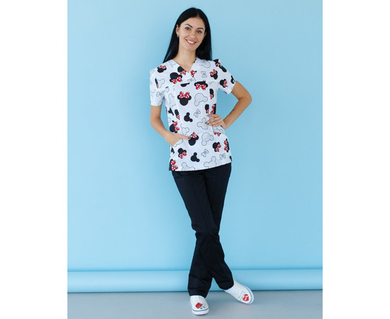 Медичний костюм з принтом жіночий Топаз міккі чорний р. 44, "БІЛИЙ ХАЛАТ" 137-321-773
