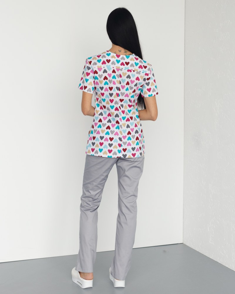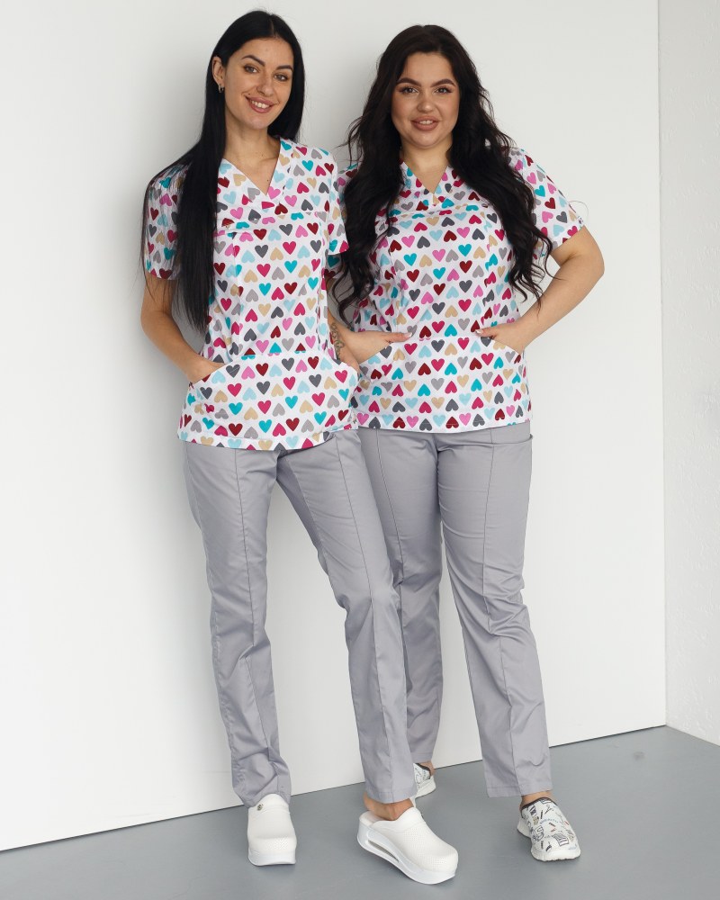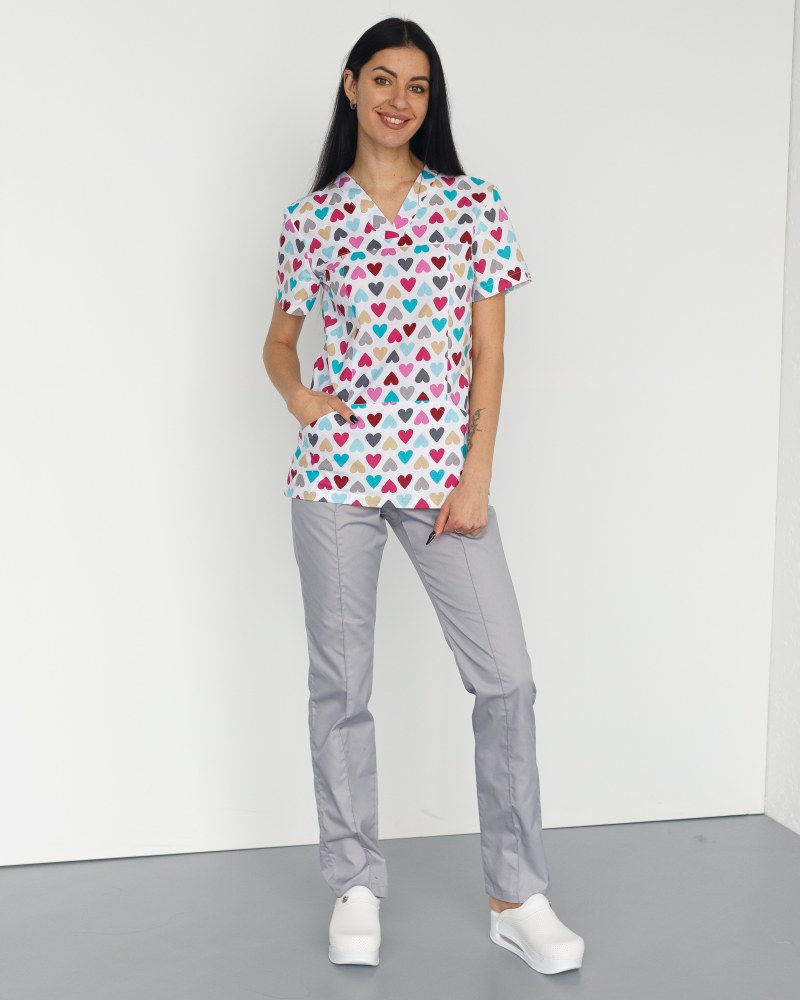 Медичний костюм із принтом жіночий Топаз Серця сірий р. 40, "БІЛИЙ ХАЛАТ" 138-328-555