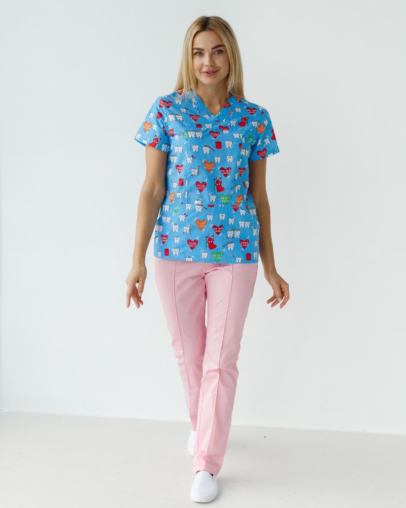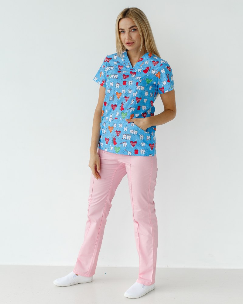 Медичний костюм із принтом жіночий Топаз Teeth blue р. 52, "БІЛИЙ ХАЛАТ" 138-376-619
