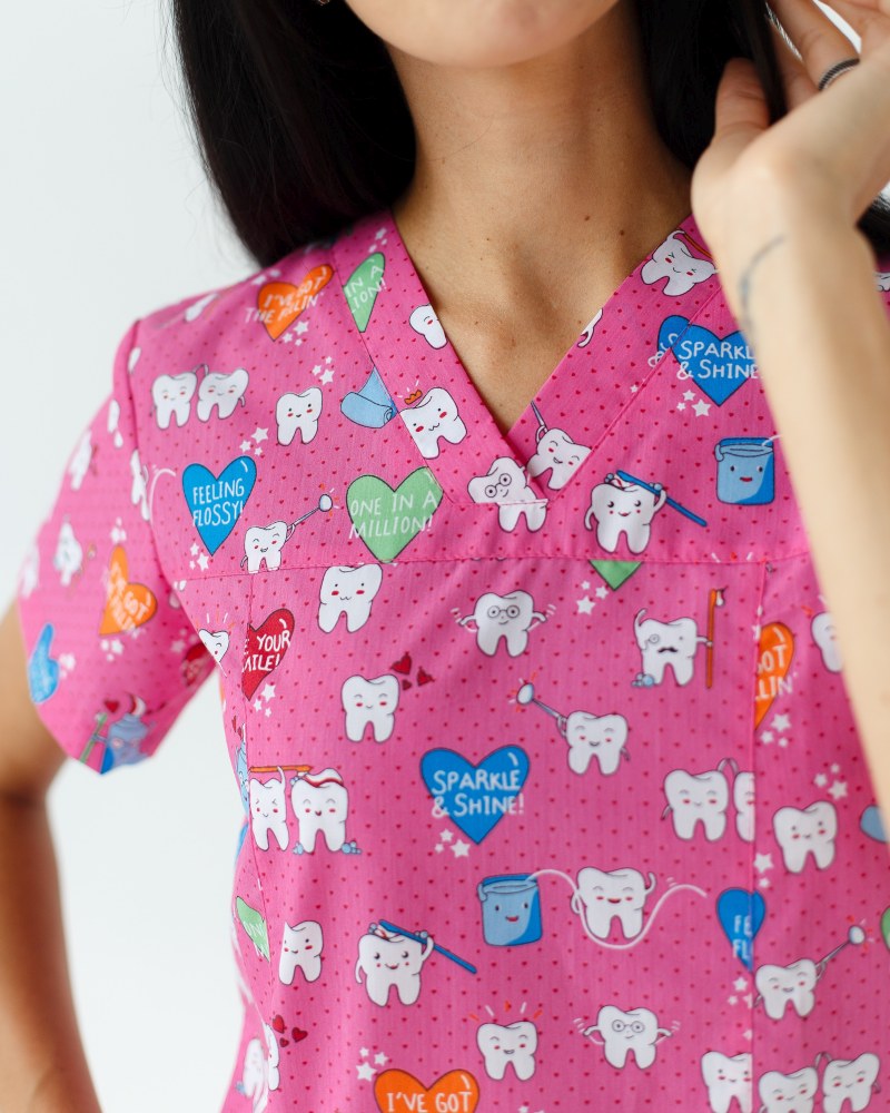 Медичний костюм із принтом жіночий Топаз Teeth pink р. 44, "БІЛИЙ ХАЛАТ" 138-337-623