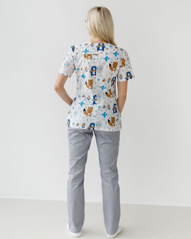 Медичний костюм з принтом жіночий Топаз зайчики сірий р. 40, "БІЛИЙ ХАЛАТ" 137-328-768