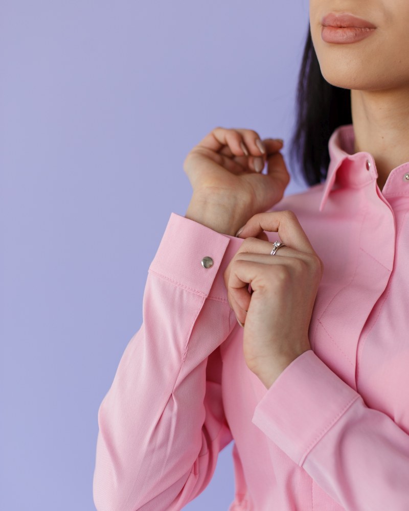 Медичний жіночий костюм «Монтана» складається з медичної сорочки на кнопках і штанів. Сорочка має стояче-відкладний комір, який можна застебнути під самий верх або залишити неглибоке декольте, розстебнувши кілька верхніх кнопок. Є дві місткі накладні кишені, а манжет рукавів фіксується потайними кнопками. Пояс-куліска підкреслює лінію талії і при цьому не сковує рухи. Низ – штани прямого фасону з еластичною гумкою на талії та двома втачними кишенями.