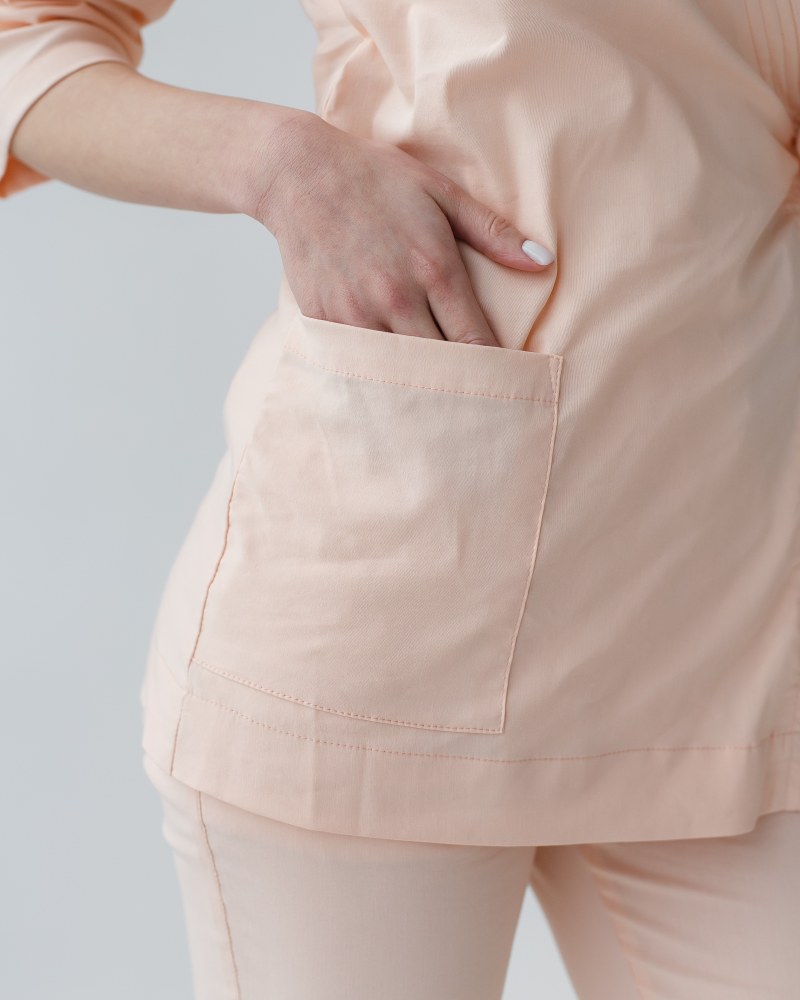Жіночий медичний костюм «Шанхай» вибирають для себе медики та представниці beauty-індустрії. «Шанхай» — це зручна уніформа, яка не заважає активному руху протягом усього робочого дня.