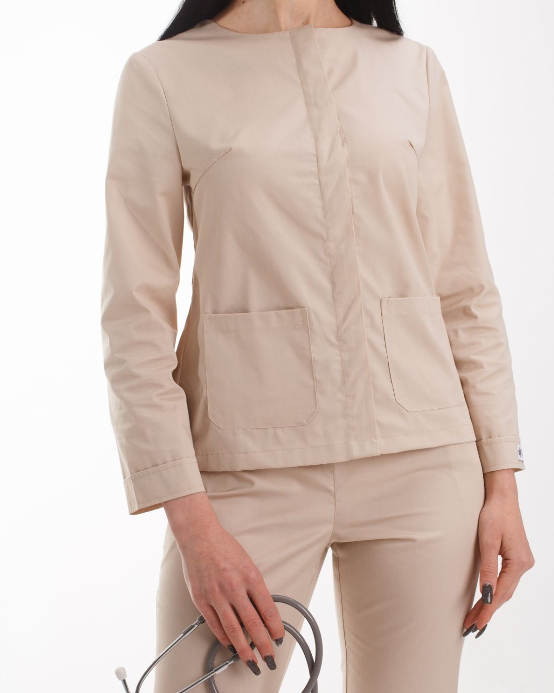 Медичний костюм Жаклін доступний у 5 кольорах: білому, чорному, попільно-рожевому, мокко та кремовому.