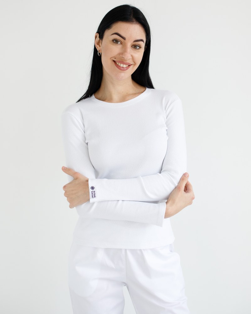 Медичний лонгслів в рубчик жіночий білий р. S, "БІЛИЙ ХАЛАТ" 392-324-716