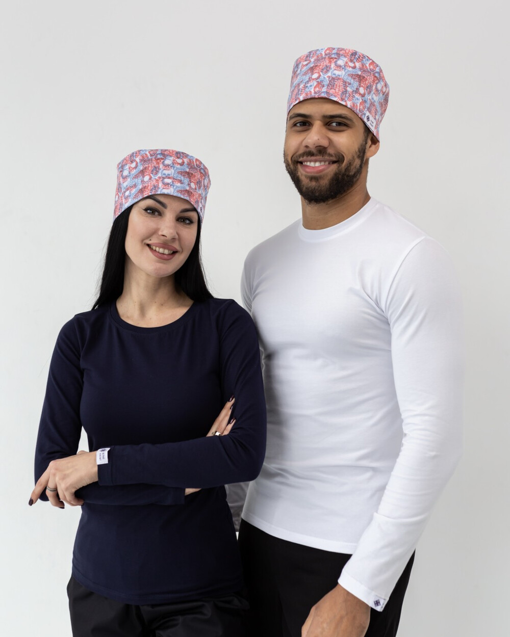 Наші медичні шапочки не втрачають кольору після багаторазового прання, можуть бути однотонні та принтовані. Вони декоровані накладною планкою та брендованою нашивкою. Позаду - зав'язки, якими легко регулювати посадку.