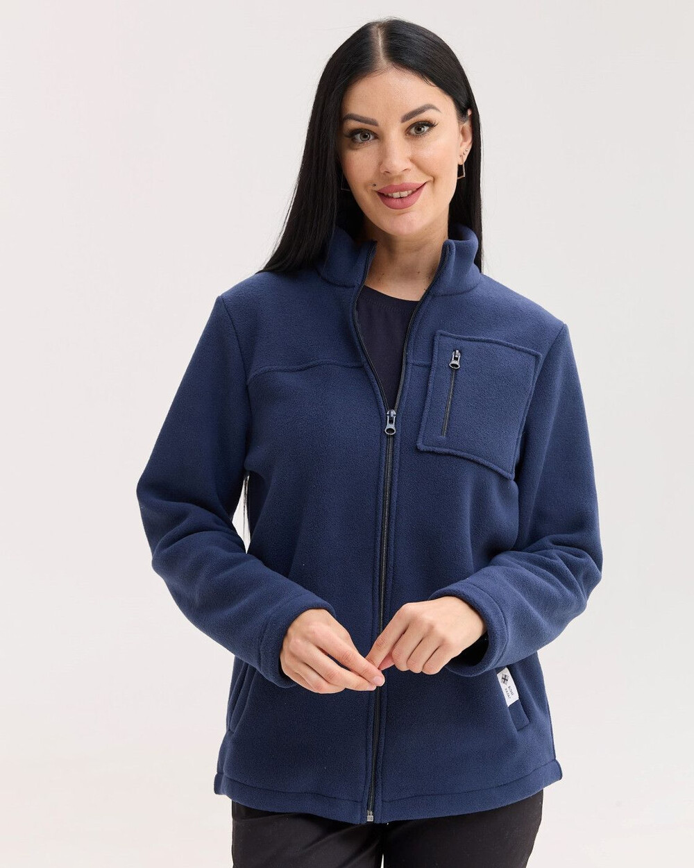 Кофта прямого силуету з коміром-стійкою, застібається на блискавку. Виріб доповнений двома місткими кишенями та нагрудною кишенею. Низ виробу за потреби можна стягувати шнуром-резинкою з фіксаторами. Виготовлена зі спеціалізованого двостороннього флісу, який краще зберігає тепло та абсолютно невибагливий у догляді.