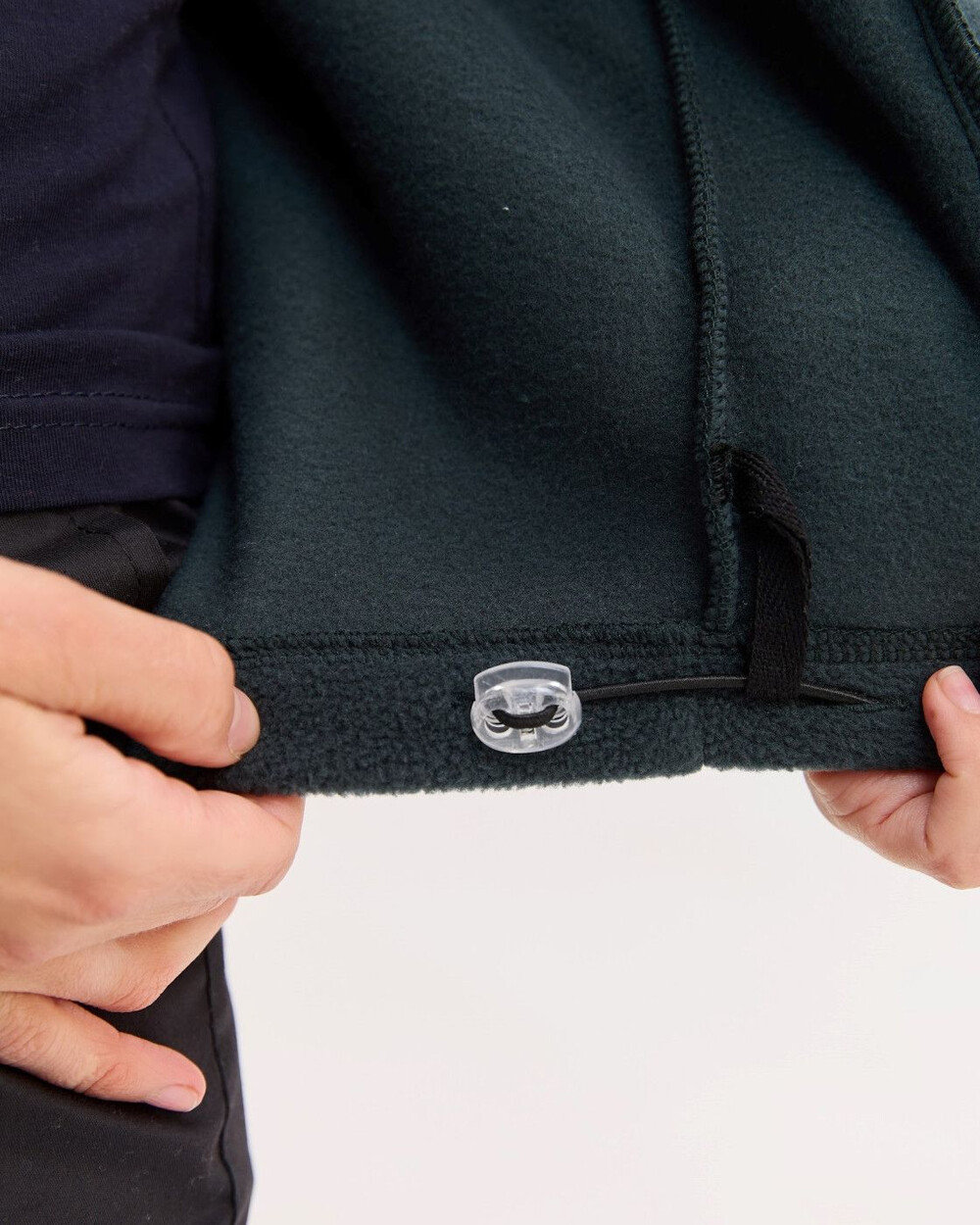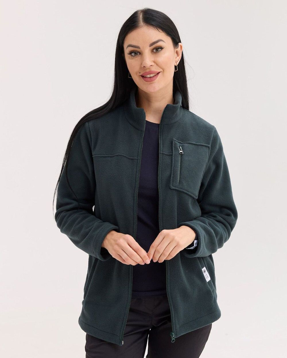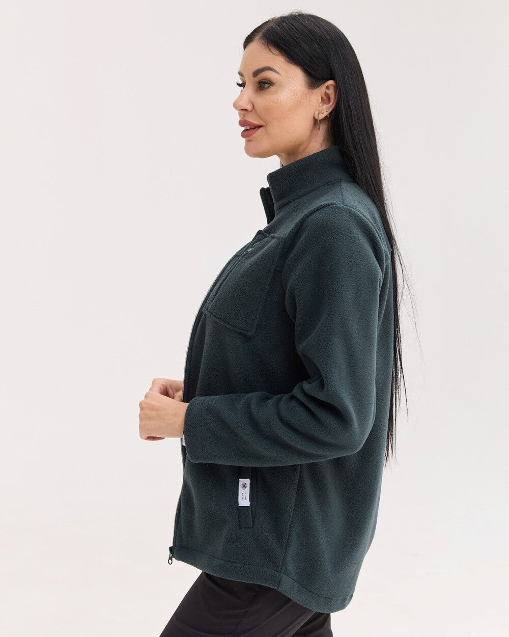 Кофта прямого силуету з коміром-стійкою, застібається на блискавку. Виріб доповнений двома місткими кишенями та нагрудною кишенею. Низ виробу за потреби можна стягувати шнуром-резинкою з фіксаторами. Виготовлена зі спеціалізованого двостороннього флісу, який краще зберігає тепло та абсолютно невибагливий у догляді.