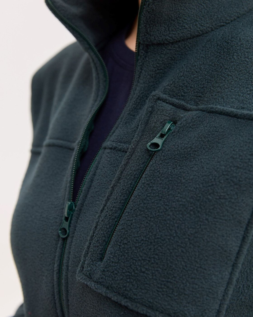 Кофта прямого силуету з коміром-стійкою, застібається на блискавку. Виріб доповнений двома місткими кишенями та нагрудною кишенею. Низ виробу за потреби можна стягувати шнуром-резинкою з фіксаторами. Виготовлена зі спеціалізованого двостороннього флісу, який краще зберігає тепло та абсолютно невибагливий у догляді.