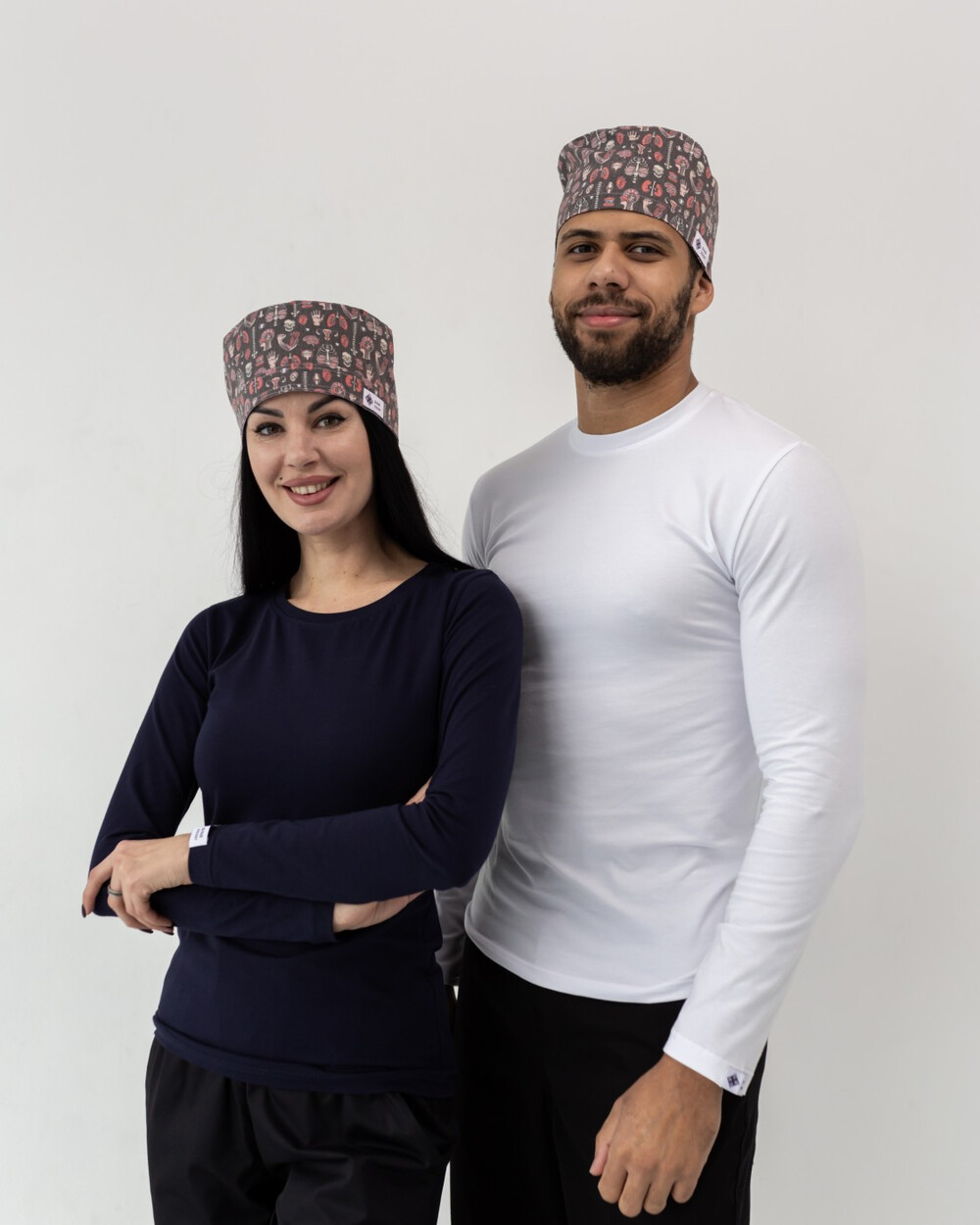Наші медичні шапочки не втрачають кольору після багаторазового прання, можуть бути однотонні та принтовані. Вони декоровані накладною планкою та брендованою нашивкою. Ззаду - вшита еластична гумка, який легко регулювати посадку.