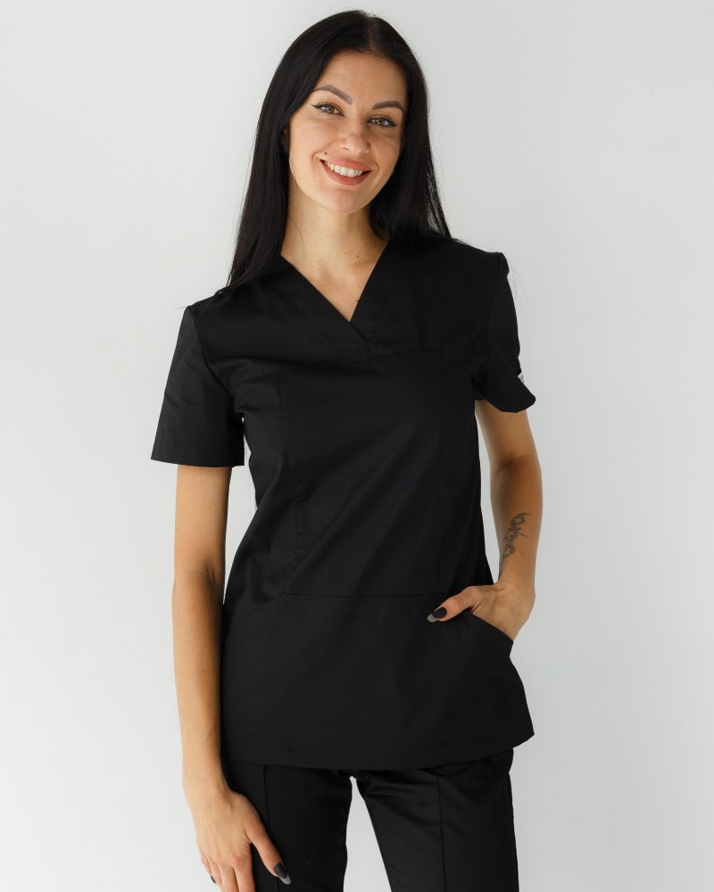 Медична сорочка жіноча Топаз чорна р. 44, "БІЛИЙ ХАЛАТ" 164-321-705