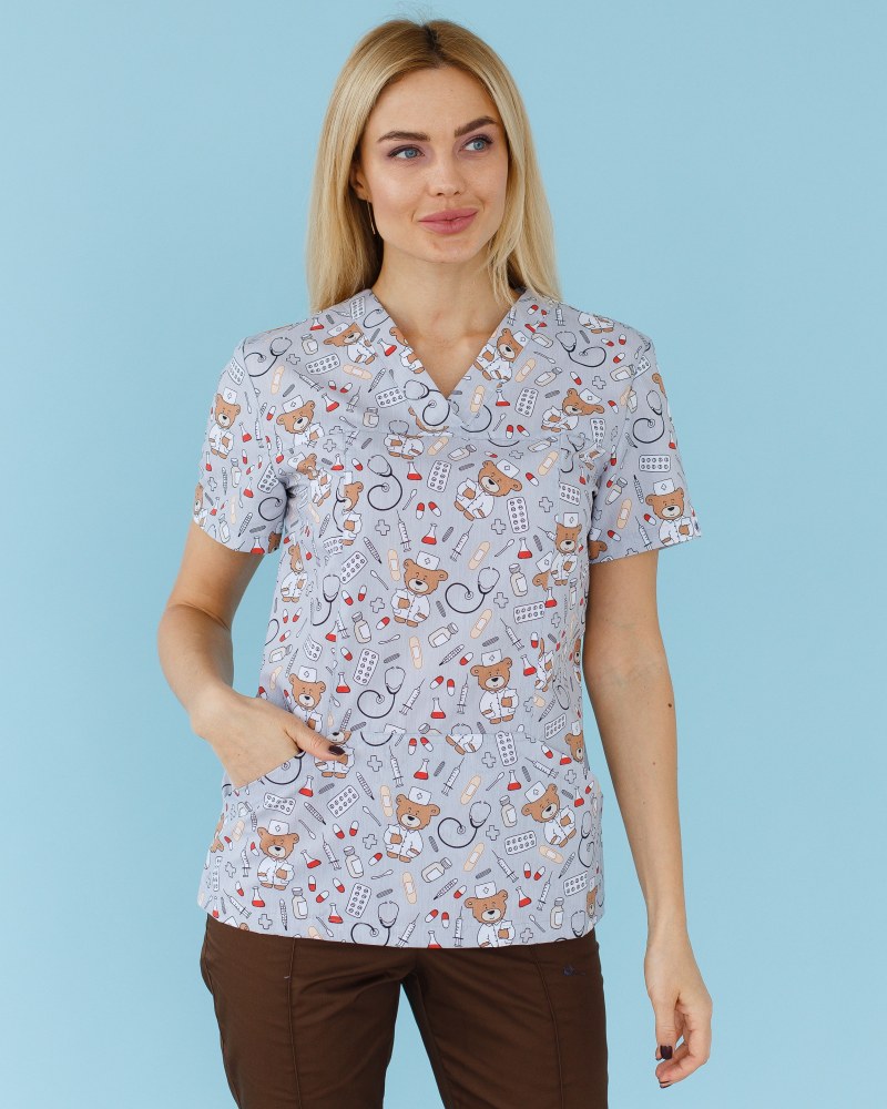Медична сорочка жіноча Топаз принт Bear gray р. 50, "БІЛИЙ ХАЛАТ" 126-373-558