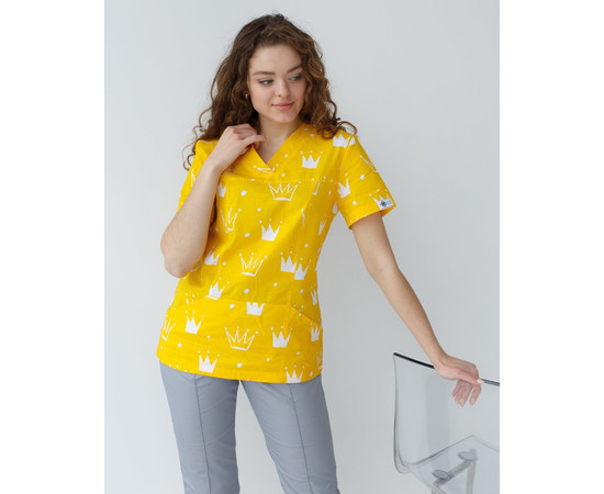 Медична сорочка жіноча Топаз принт корона жовта р. 40, "БІЛИЙ ХАЛАТ" 126-397-767