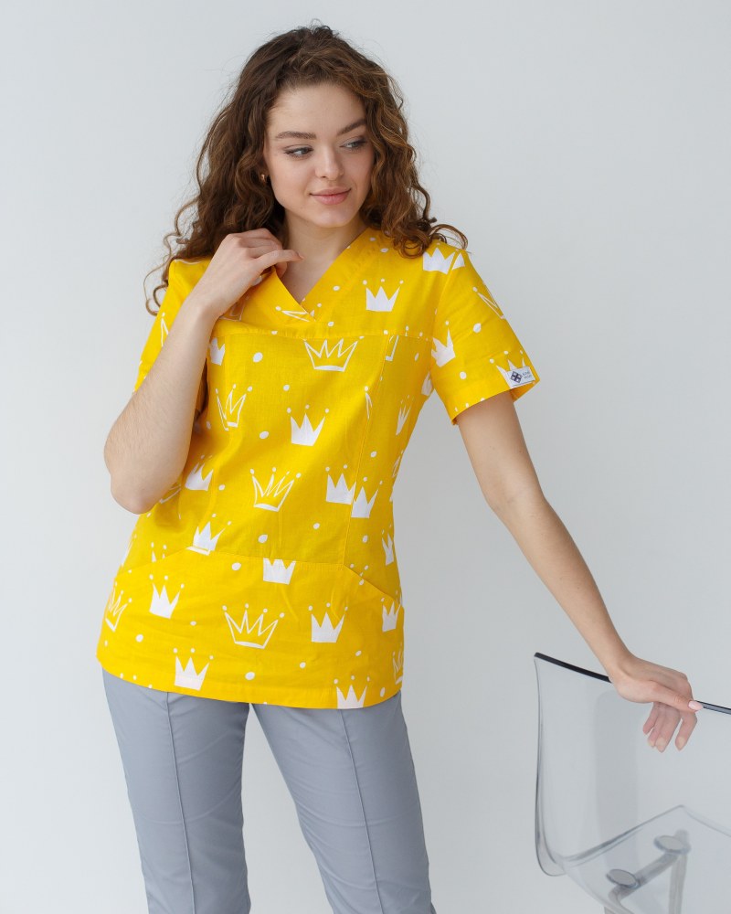 Медична сорочка жіноча Топаз принт корона жовта р. 54, "БІЛИЙ ХАЛАТ" 126-397-767