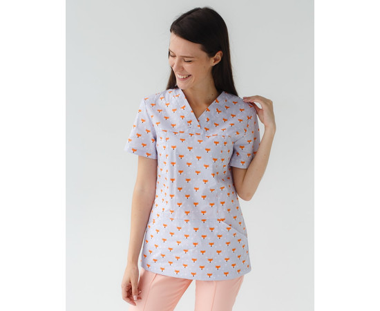 Медична сорочка жіноча Топаз принт лисички персикові р. 40, "БІЛИЙ ХАЛАТ" 164-338-729