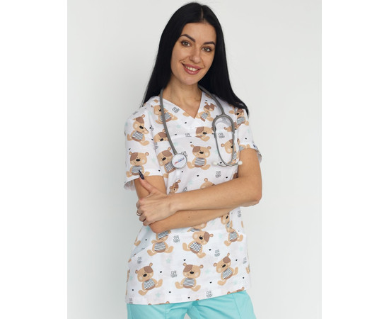 Медична сорочка жіноча Топаз принт Тедді м'ятний р. 52, "БІЛИЙ ХАЛАТ" 126-332-888
