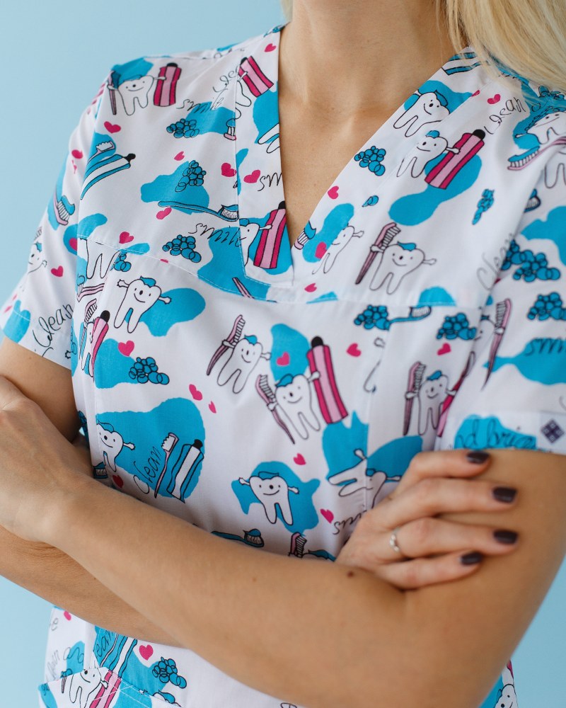 Медична сорочка жіноча Топаз принт Teeth Smile р. 52, "БІЛИЙ ХАЛАТ" 126-324-626