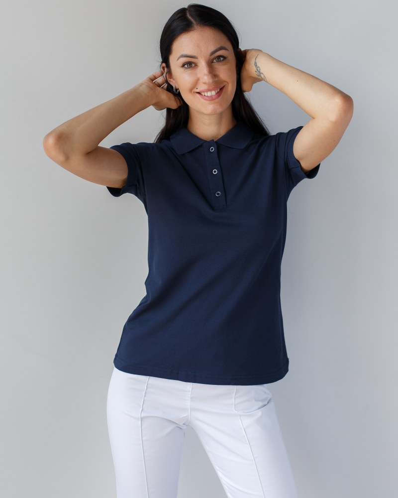 Медичне поло жіноче — це трикотажна сорочка напівприталеного фасону з коротким рукавом. Головна його особливість - класичний неглибокий виріз, оброблений вшивними планками, доповнений трьома гудзиками. Виріз горловини обрамлений м'яким трикотажним відкладним сорочковим коміром. Якщо ще кілька років тому медичне поло носили лише чоловіки, то зараз вони стали основою робітничого гардеробу жінок-лікарів та представниць індустрії краси.