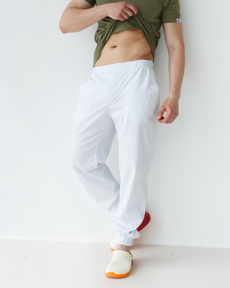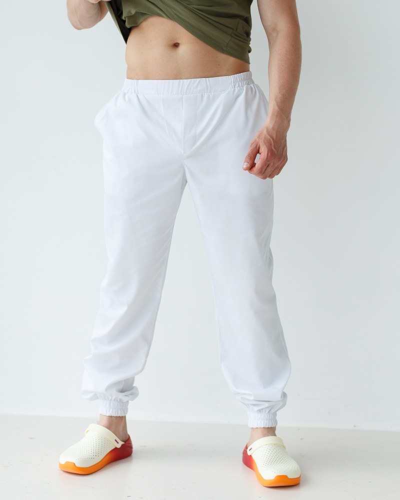 Медичні штани чоловічі джоггери білі р. 48, "БІЛИЙ ХАЛАТ" 342-324-758