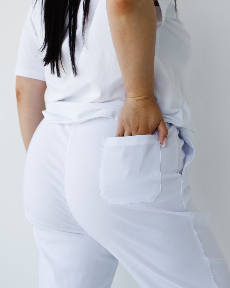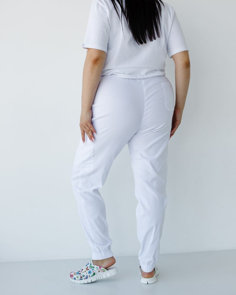 Медичні штани жіночі джогери стрейч білі +SIZE р. 56, "БІЛИЙ ХАЛАТ" 503-324-730
