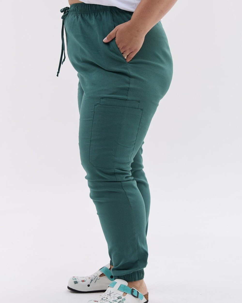 Медичні штани жіночі джогери стрейч зелені +SIZE р. 60, "БІЛИЙ ХАЛАТ" 503-350-730