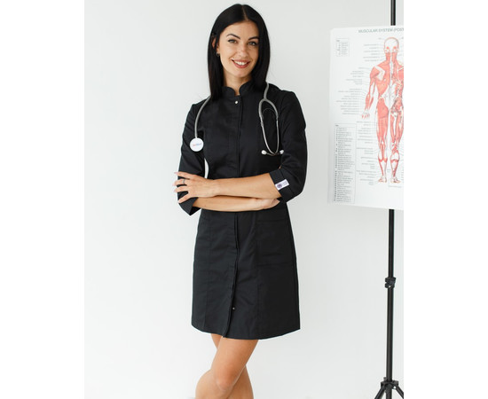 Медичний халат жіночий Сакура чорний р. 44, "БІЛИЙ ХАЛАТ" 160-321-678