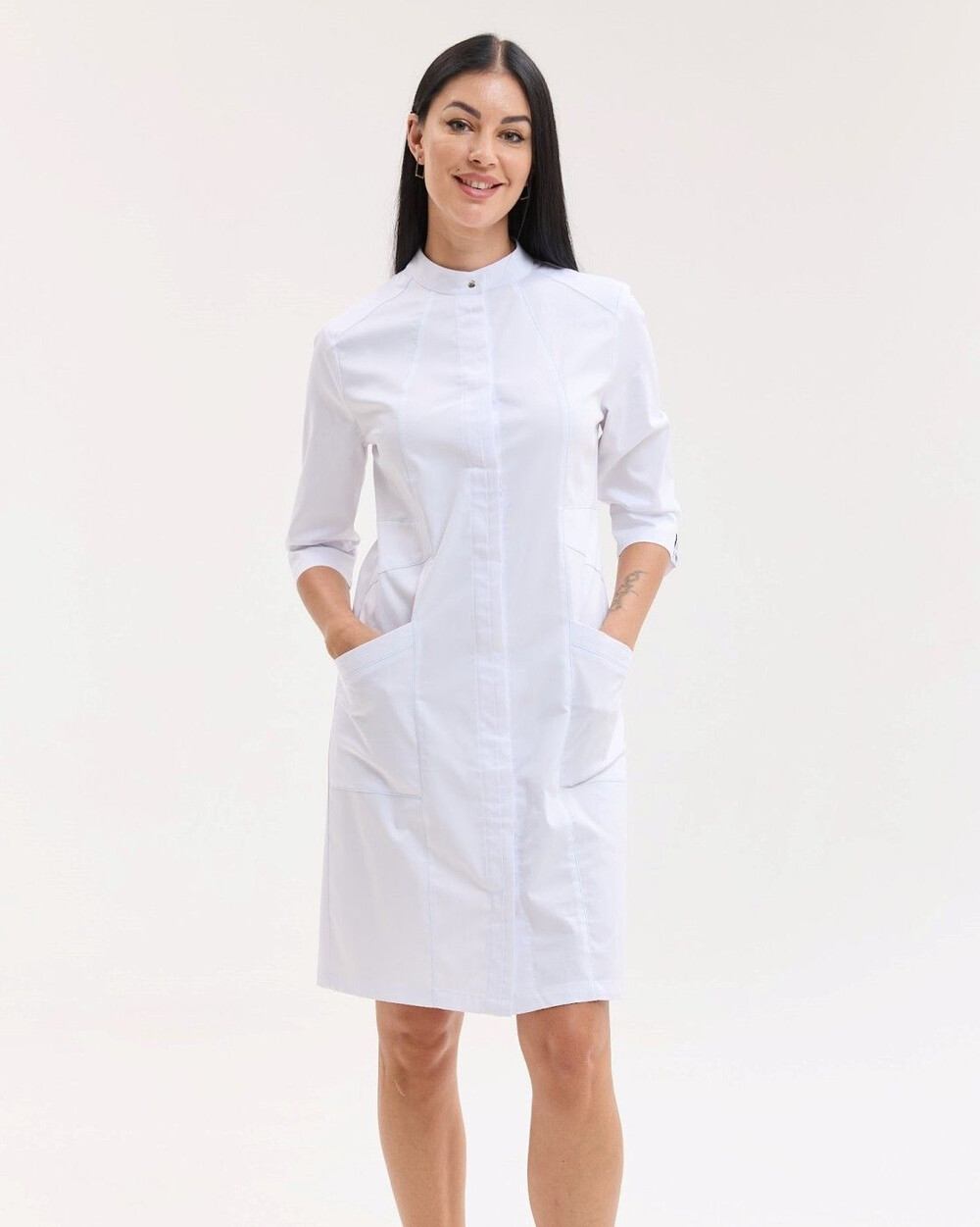 Медичний халат жіночий Валенсія білий з м'ятною прострочкою р. 40, "БІЛИЙ ХАЛАТ" 588-541-679