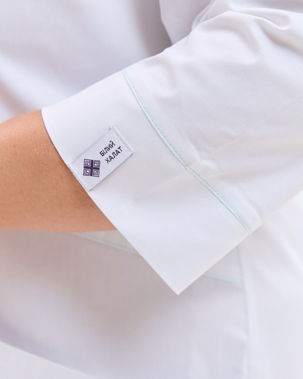 Медичний халат жіночий Валенсія білий з м'ятною прострочкою +SIZE р. 60, "БІЛИЙ ХАЛАТ" 594-324-679