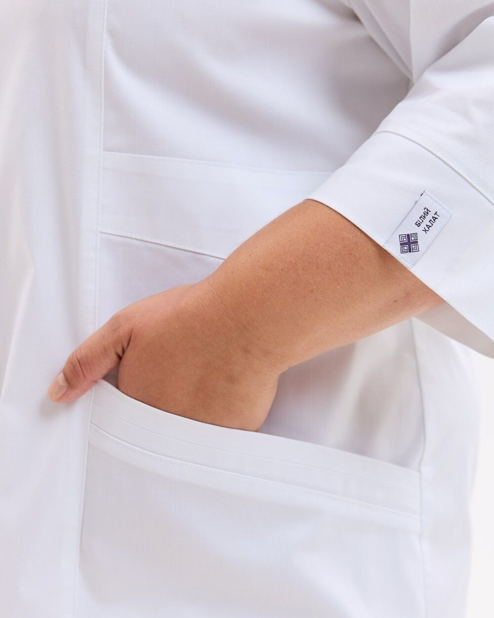 Медичний халат жіночий Валенсія білий з принтованою вставкою Medical +SIZE р. 60, "БІЛИЙ ХАЛАТ" 594-539-679