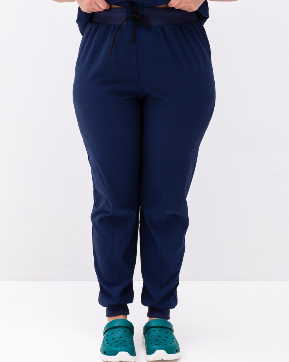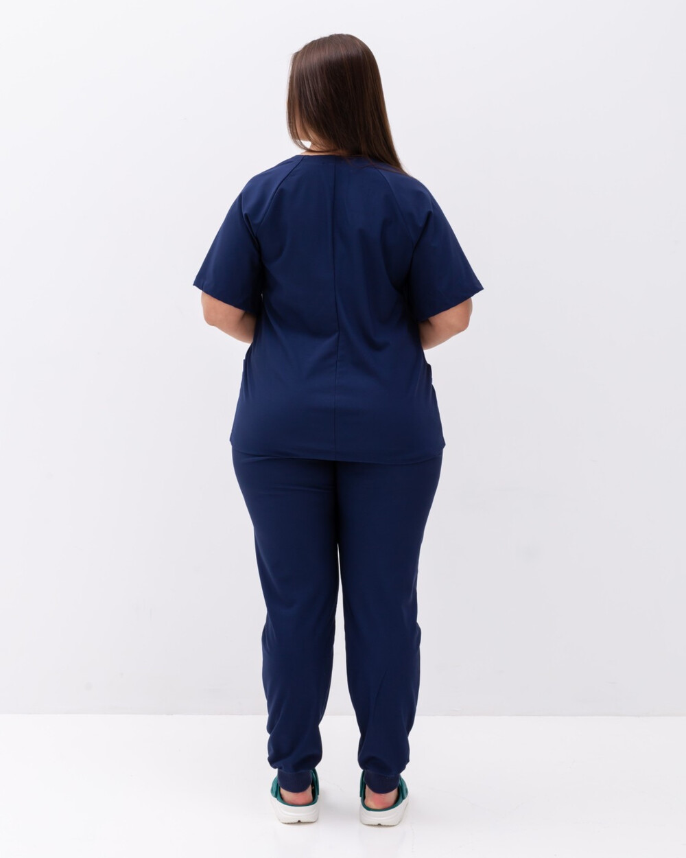 V-подібний виріз сорочки, джоггери на зручній гумці із зав'язками, зручна довжина виробів. Важлива з переваг — еластична тканина преміум сегмента, яка не меніться і тягнеться на всі боки.
