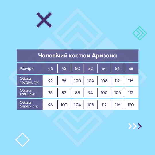 Медичний костюм чоловічий Арізона синій р. 56, "БІЛИЙ ХАЛАТ" 482-322-924
