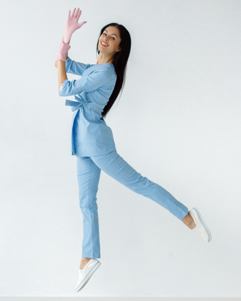 Жіночий медичний костюм «Шанхай» вибирають для себе і медики та представниці beauty-індустрії. «Шанхай» — це зручна уніформа, яка не заважає активному руху протягом усього робочого дня.