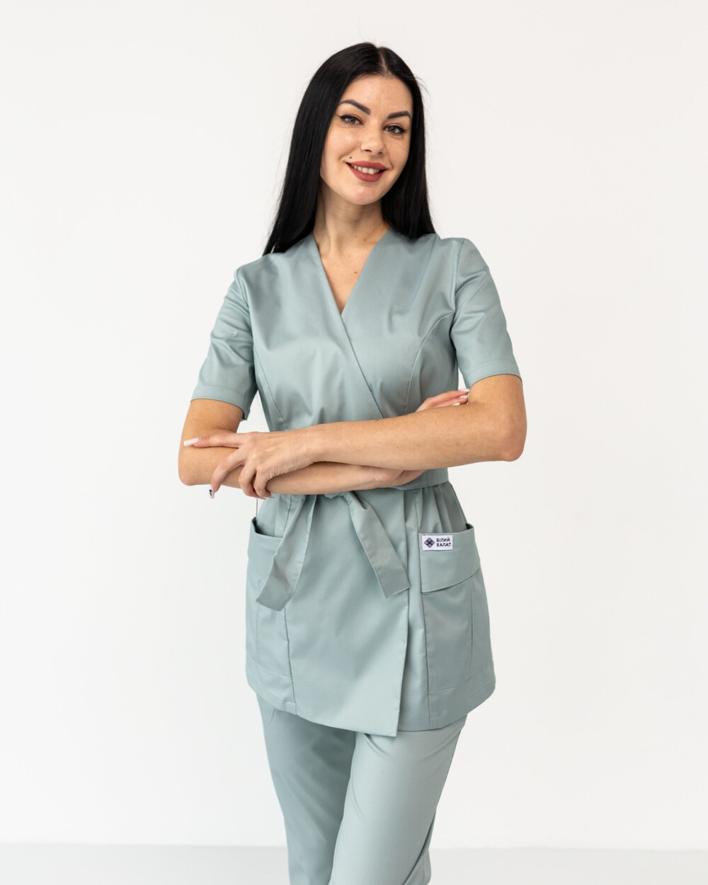 Медичний костюм жіночий Кіото світло-м'ятний р. 48, "БІЛИЙ ХАЛАТ" 519-440-679