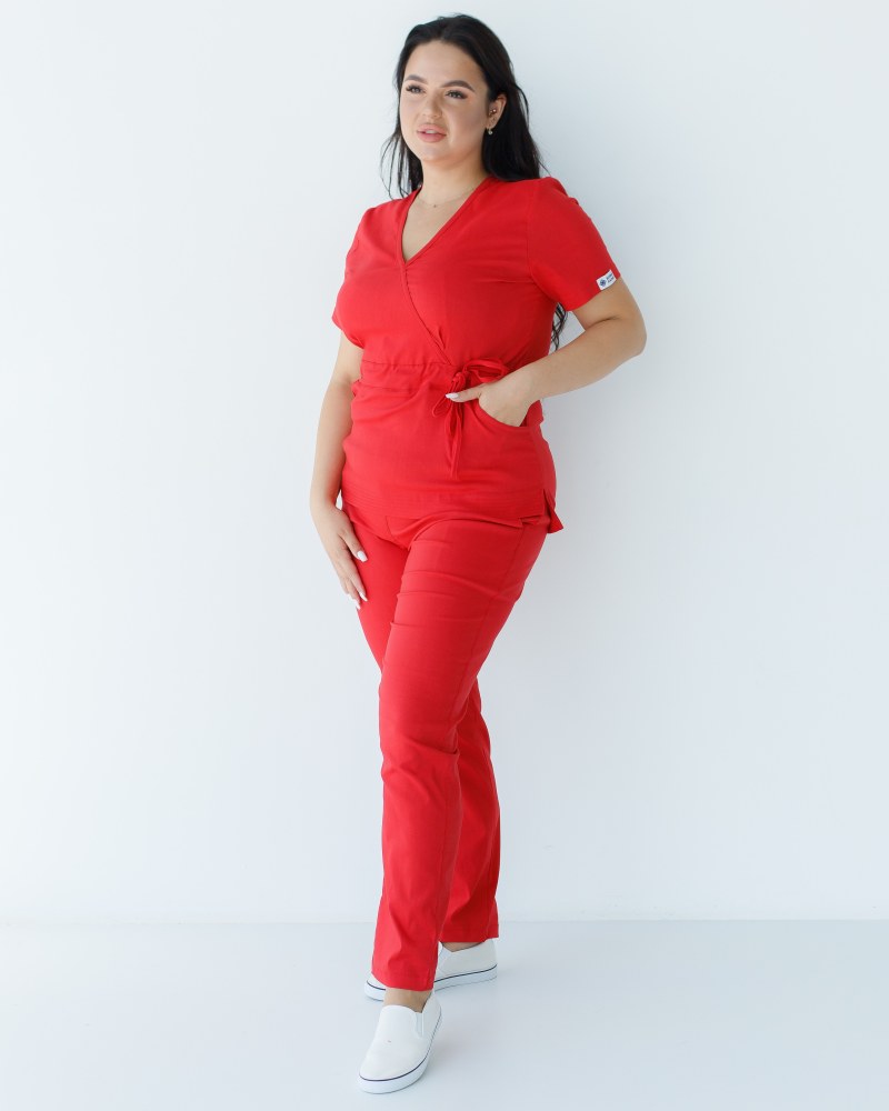 Медичний костюм жіночий Ріо червоний +SIZE р. 56, "БІЛИЙ ХАЛАТ" 346-339-704