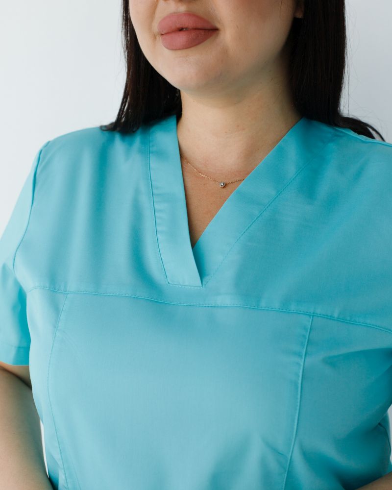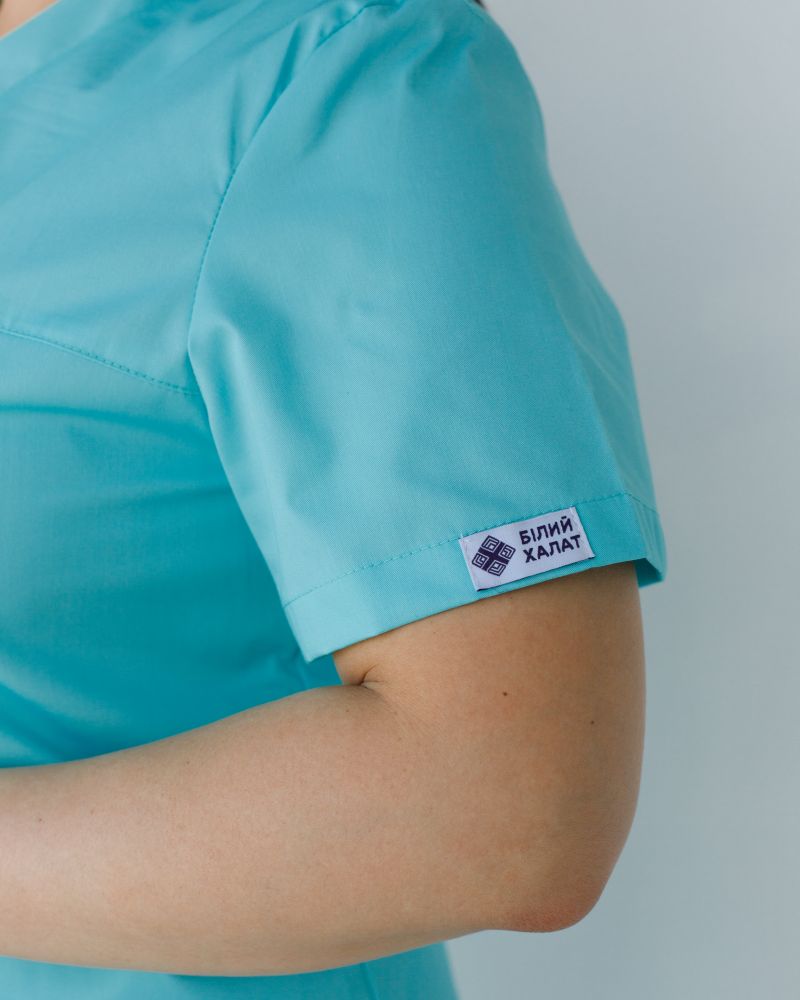 Жіночий медичний костюм "Топаз" +SIZE - бестселер лінії "+SIZE" з асортименту бренду медичного одягу "Білий Халат". Мед костюм жіночий «Топаз» +SIZE підійде для лікарів, молодшого медичного персоналу та представників індустрії краси. Це медична уніформа жіноча, яка доречно виглядає як на прийомі пацієнтів, під час тривалої робочої зміни та навіть на профільній конференції. Жіночий хірургічний костюм «Топаз» +SIZE для наших покупців став синонімом зручності та практичності, а також бездоганного зовнішнього вигляду.