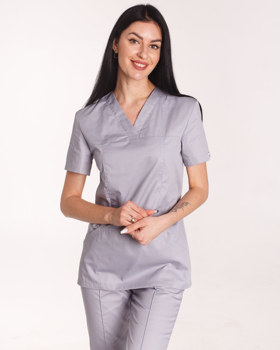 Купити жіночий медичний костюм можете як з однотонною, так і з принтованою медичною сорочкою або доповнити його тематичною вишивкою або індивідуальним малюнком ручної роботи.